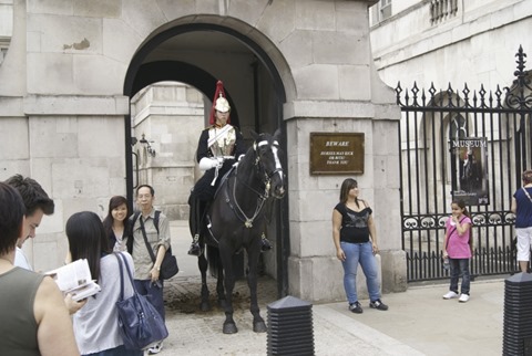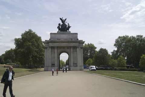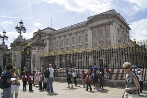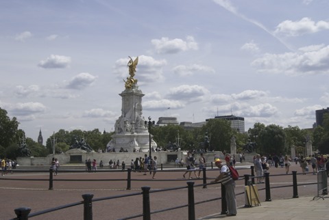 Chegando a Londres pela Victoria Station, pode-se atravessar por uma passagem subterrânea até a praça com o memorial da guerra em homenagem a todos aqueles que lutaram pelo Reino Unido em todas as partes do mundo. Depois seguimos por uma extensa avenida que margeia os jardins internos do Palácio de Buckingham. Buckingham Palace é a residência oficial da rainha onde ela ocupa uma ala gigantesca no térreo, voltada para o enorme jardim privativo nos fundos do palácio.