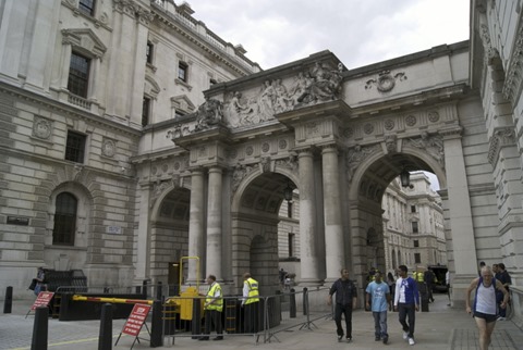 A partir da Trafalgar Square começa uma longa série de prédios governamentais e militares alinhados até o enorme prédio do parlamento. Incluindo a famosa Downing Street, onde no número 10 fica a residência do Primeiro Ministro.