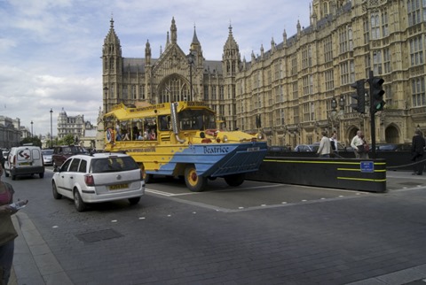 O carro/barco que aparece na foto faz passeios terrestres e aquáticos e é conhecido como Duck Bus e parace ser bem legal, apesar de não ter tido tempo de experimentarmos. Pode ser encontrado nesse link: http://www.londonducktours.co.uk/