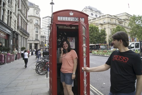 As tradicionais cabines telefônicas vermelhas da Inglaterra.