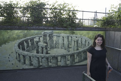 Stonehenge é diferente. Fica na beira de uma estrada que corta uma região de fazendas. Tem um estacionamento e uma loja de souvenirs, por onde fica a entrada, depois atravessa-se a estrada por uma passagem subterrânea para o outro lado da estrada, onde ficam as pedras. O local é cercado e para entrar somente através da loja pagando a entrada. Onde ficam as pedras não tem nenhuma construção, nenhuma cobertura, lanchonete, nada.