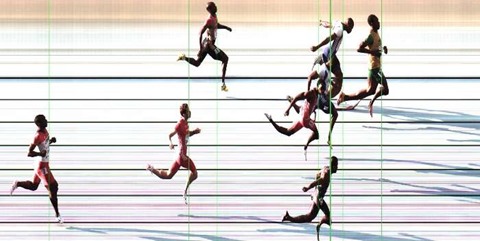 A câmera fotográfica responsável pela “foto da chegada” garante a imagem necessária do momento da chegada em uma corrida. A imagem é movida lateralmente através de um corte vertical de frente para a linha de chegada. O filme é movido a aproximadamente mesma velocidade que o objeto (competidores), mas se for movido vagarosamente, o alongamento típico da imagem ocorre. Câmeras digitais modernas usadas para esta operação, operam com um disparador equivalente a 1/2000s, e são conectadas a um computador que analiza rapidamente a imagem. A primeira chegada tripla em corrida de cavalos registrada, ocorreu em Outubro de 1953.