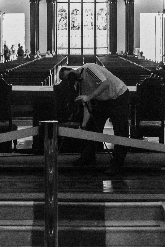Fotografando para o projeto Catedral Metropolitana de Campinas. Foto de Marcela Zullo Pereira. Campinas, 2016.